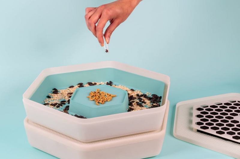 Our mealworm growing kits include stackable pods, a starter pack with live mealworms and beetles (when in stock), and optional storage trays. These kits provide everything needed to start and sustain your own mealworm farm at home