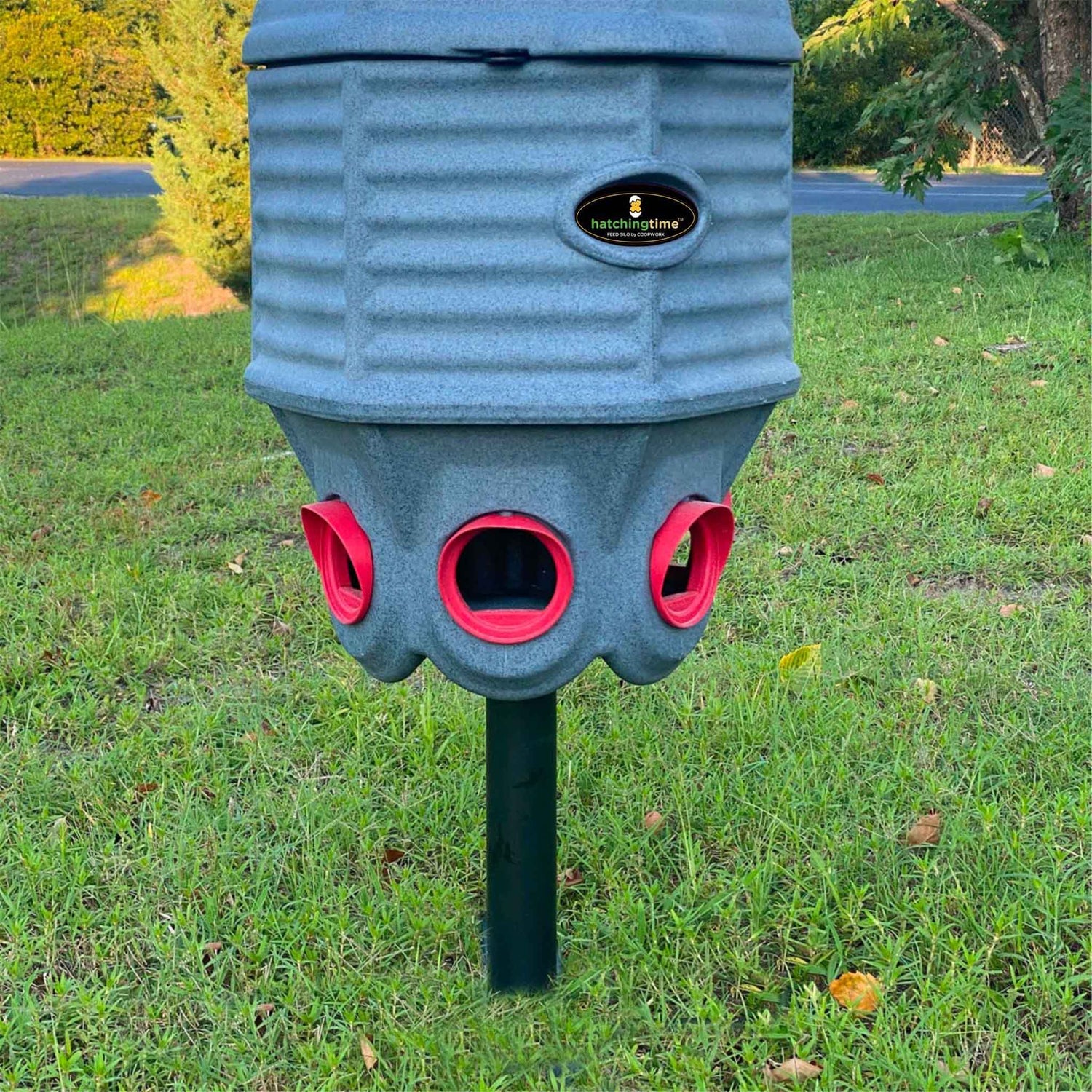 The Hatching Time Feed Silo (40 lb) is an essential addition to any backyard poultry setup. Its durable, elevated design ensures your feed stays safe, clean, and accessible for chickens, ducks, or turkeys. With a large capacity and two versatile mounting options (X-Base or Stake Mount), this feeder provides the flexibility and functionality to meet the needs of any poultry keeper. Keep your flock well-fed and your backyard neat—choose the Hatching Time Feed Silo today!