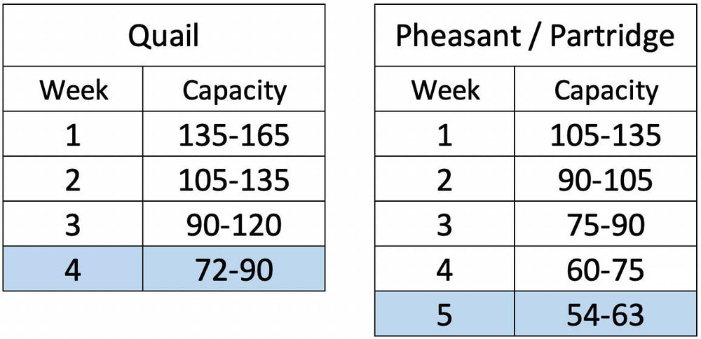 This unit is best suited for smaller gamebirds, such as quail, partridge and pheasants.