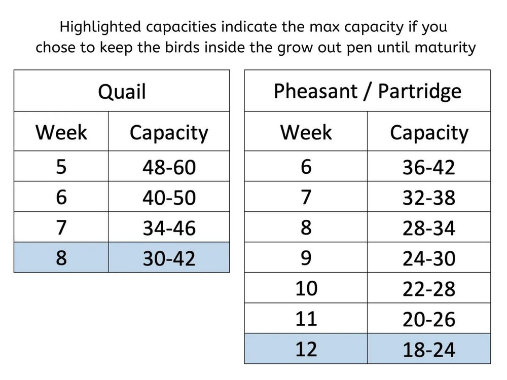 Power-washable & rust-proof stacking grow out pen is perfect for rearing teen quail, pheasants, partridge, or small game birds. For pullets (chickens), teen turkeys, ducklings and goslings, view our taller 15" models. With 9.5" of headspace, this unit will ensure your birds grow up safely before joining the flock. To prevent bird wetting, closed nipple drinkers receive clean, algae-free water from the water tank above. The unit boasts lockable wheels and an improved door locking system to prevent escapees. To remove waste efficiency, there are deep manure trays. Red feed grill covers are included to eliminate the flinging of feed, thus saving money.