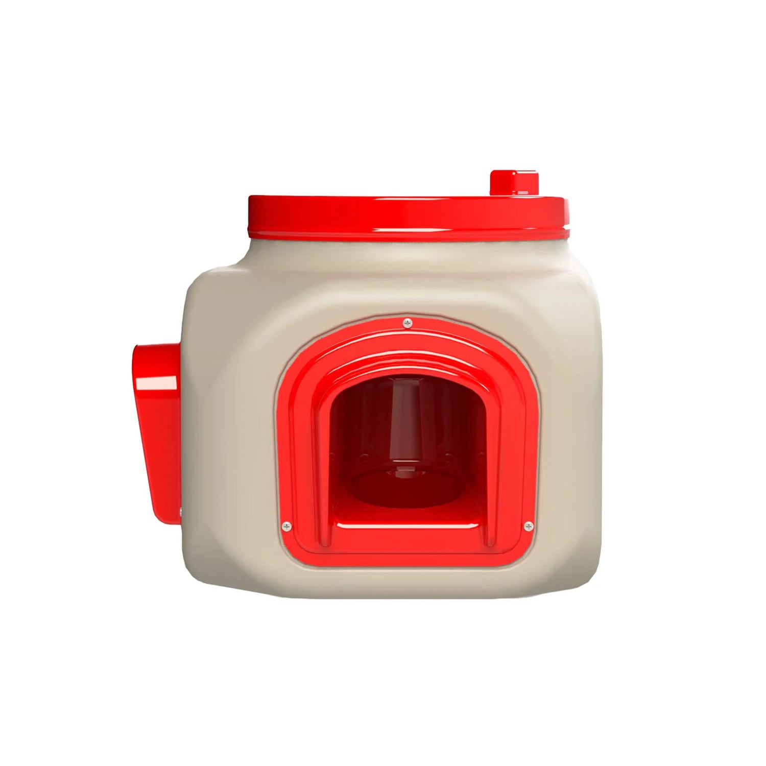 Constructed from UV-protected, food-safe, BPA-free recyclable plastic, this feeder is built to last, whether placed inside the coop or outdoors. The rainproof lid and overhang design ensure feed stays dry even in harsh weather conditions. As chickens feed, the gravity-fed system automatically replenishes the feed at the ports, ensuring easy access for your birds.