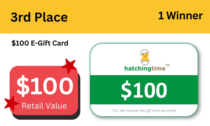 Your video must: be at least 15 seconds or longer, visibly show a Hatching Time product, be posted publicly between April 6 - 20th, 2026, and include @HatchingTime and #HatchingTime and #HatchingTimeSweepstakes in the caption.