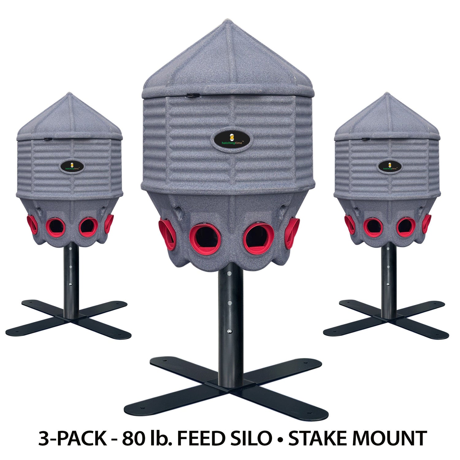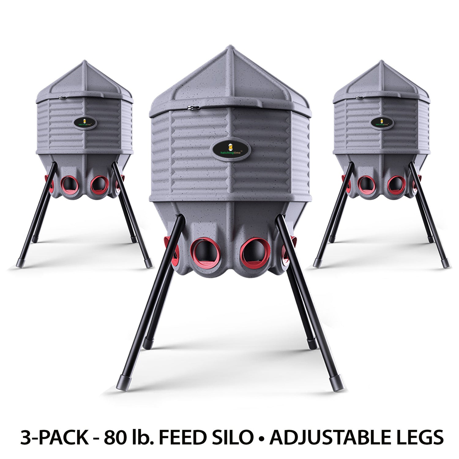 The Hatching Time Feed Silo Bundle (80lb) 3-Pack is the ultimate feeding solution for poultry enthusiasts, hobbyists, and small-scale farmers managing chickens, ducks, or turkeys. With a combined feed capacity of 240 lbs, this bundle simplifies feeding for large flocks while keeping your backyard or farm clean and organized. Each silo features advanced technology to prevent waste, maintain feed freshness, and reduce refill frequency, making it perfect for daily use.