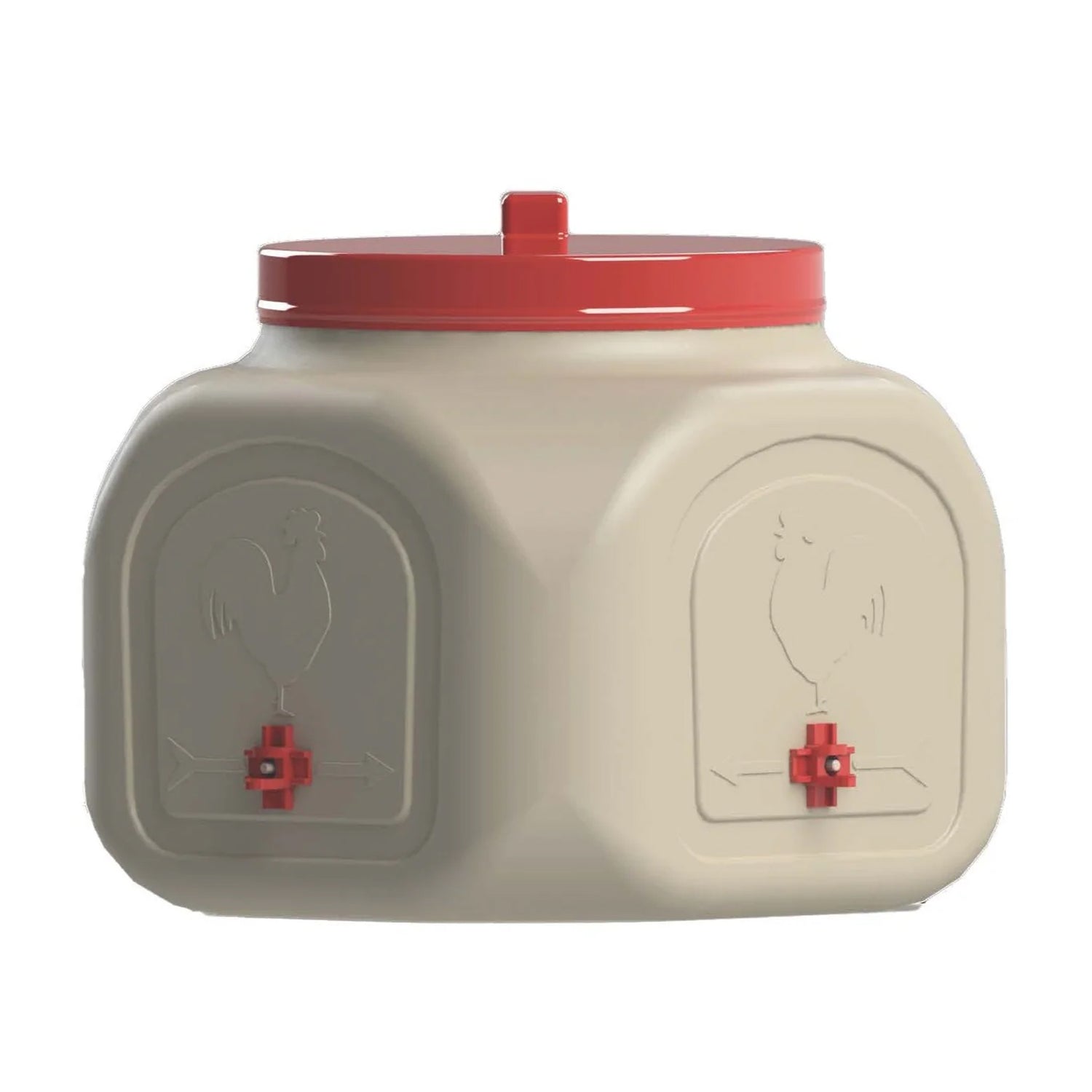 Keep your flock hydrated with the Compact Chicken Waterer, designed to provide a clean, efficient, and waste-free watering solution for your backyard chickens. With a 5-gallon capacity, this waterer ensures your birds always have access to fresh water, whether placed indoors or outdoors. Made from UV-protected, food-safe, BPA-free recyclable plastic, this durable waterer is built to withstand the elements and provide long-lasting performance for your flock.